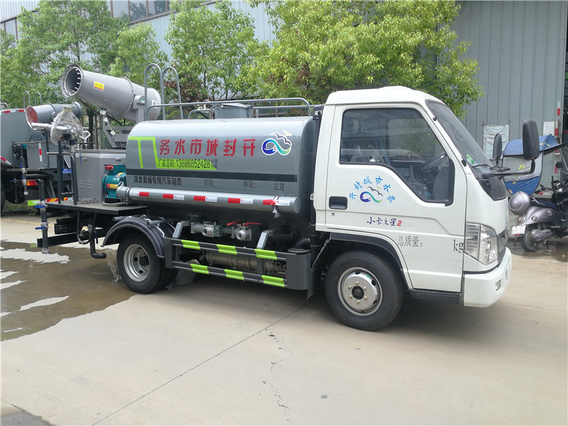 福田藍牌灑水車多少錢一輛_福田藍牌霧炮抑塵車,福田小卡二藍牌灑水車_國六藍牌霧炮車_藍牌三方灑水車_湖北盈通專用汽車有限公司,功能配置:罐體有效容積9噸,采用武鋼4mm 優質碳鋼一次卷壓無縫成型,部分配灑水泵,帶前沖、后灑、側噴、后工作平臺及灑水高壓炮。配消防接口、自流閥,2根與罐體等長輸水管,水位計,1個爬梯,兩側及后杠。灑水泵自吸高度為7米,出水量為60立方米每小時,灑水寬度大于14米,后工作平臺水炮可調成直沖狀、大雨、中雨、小雨、毛毛雨,直沖射程25米左右,霧狀射程15米左右。(可選配:錳鋼罐體、加粗管道、駕駛室一鍵操作、氣動控制、罐體防腐、高端灑水泵)