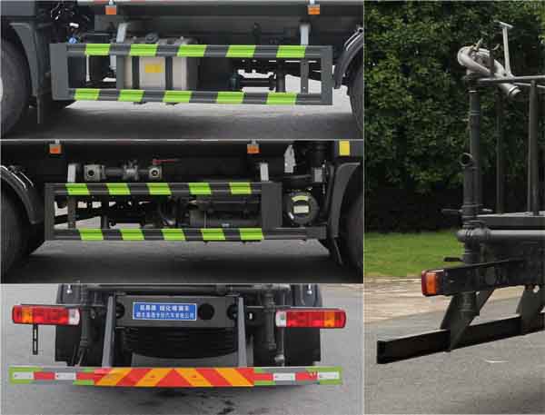 該車主要用于城鄉園林綠化噴灑;主要裝置為罐體及噴灑裝置;罐體總容量:11.6立方米;罐體有效容積:11.05立方米;罐體外形尺寸(×長軸×短軸)(mm):4200×2450×1650,4000×2450×1730;側、后防護材料均為:Q235碳鋼,連接方式均為:螺栓連接,后部防護截面尺寸(mm):120×50,后部防護離地高度(mm):470;ABS系統型號:ABS-VI.E;生產企業:廣州瑞立科密汽車電子股份有限公司.ABS系統型號:ABS-E;生產企業:威伯科汽車控制系統(中國)有限公司,ABS系統型號:3550D-1010;生產企業:東科克諾爾商用車制動系統(十堰)有限公司.采用3950mm軸距.選裝噴霧裝置樣式.選裝后部箭頭燈裝置,選裝后部弧形噴灑裝置,選裝高位花灑管道安裝樣式,選裝水炮支架位置。