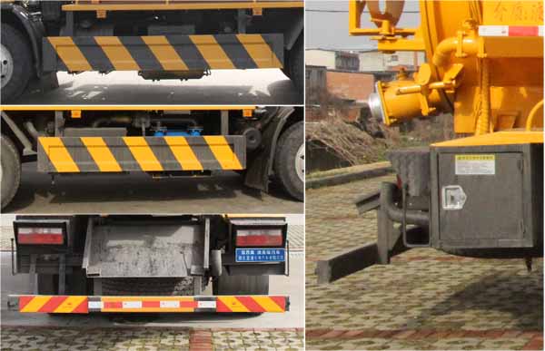 該車用于下水道排污及疏通,專用裝置:罐體、吸污泵、清洗沖刷總成;該車具有舉升功能;罐體外形尺寸(罐體總長×直徑)(mm):4600×1600,邊掛清水罐尺寸(××)(mm):3900×550×1090.污水罐總容量:7.47立方米,污水罐有效容積:7.11立方米,介質:液態污物,密度800千克/立方米;清水罐有效容積:3.5立方米,介質:,密度1000千克/立方米;清水罐和污水罐為獨立罐體,清洗功能時用清水罐,吸污功能時用污水罐,污水罐和清水罐不可同時滿載,兩罐不可同時使用.ABS型號/廠家:ABS型號:ABS/ASR-24V-4S/4M,廠家:襄陽東風隆誠機械有限責任公司;側、后防護材料均為:Q235碳鋼,側、后防護均為焊接連接,后部防護截面尺寸(mm):120×50,后部防護離地高度(mm):430;僅采用底盤3800mm軸距改裝.隨底盤選裝駕駛室,選裝側面樣式.隨底盤選裝限速裝置,限速為89km/h.