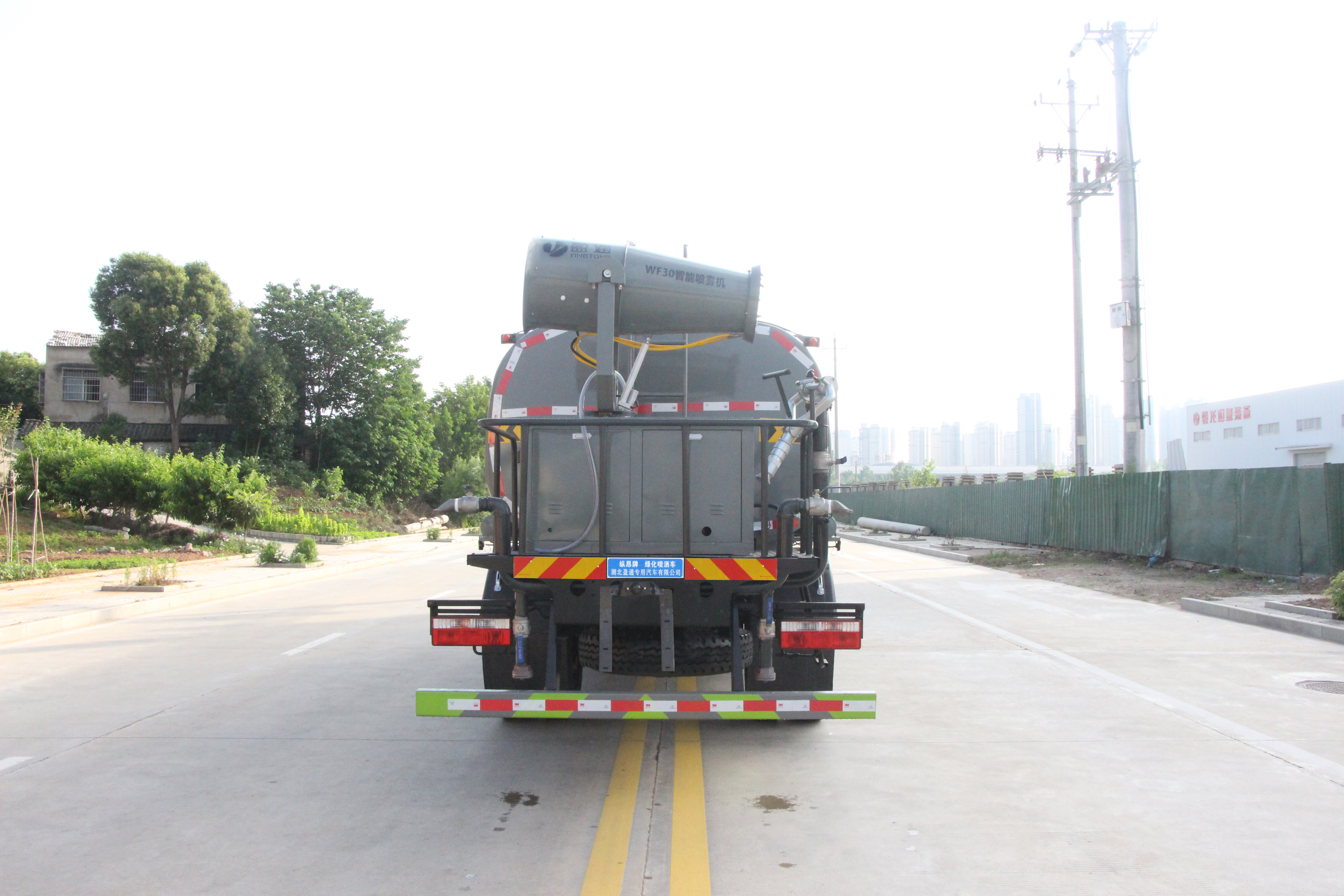 選裝噴霧裝置樣式;ABS型號:ABS/ASR-24V-4S/4M;ABS生產(chǎn)企業(yè):襄陽東風(fēng)隆誠機械有限責(zé)任公司;隨底盤選裝駕駛室;側(cè)、后防護材料均為:Q235碳鋼,連接方式均為:螺栓連接,后部防護截面尺寸(mm):120×50,后部防護離地高度(mm):440;罐體總?cè)萘?/span>:8.47立方米;罐體有效容積:8.07立方米;罐體外形尺寸(長×長軸×短軸)(mm):4000×2050×1450;該車主要用于城鄉(xiāng)園林綠化噴灑,噴藥;主要裝置為水罐及噴灑裝置;隨底盤選裝油箱左右位置.選裝自動球閥安裝位置,選裝后部噴灑裝置樣式.選裝前部電子炮樣式,前伸500mm時,整車長度為7750mm,7950mm.選裝罐體頂部方形罐口樣式及罐口位置,選裝工具箱,選裝箭頭燈裝置,選裝高位花灑裝置,選裝車輛前部鴨嘴裝置.后部作業(yè)燈僅在作業(yè)時開啟,車輛行駛過程中不可開啟. |