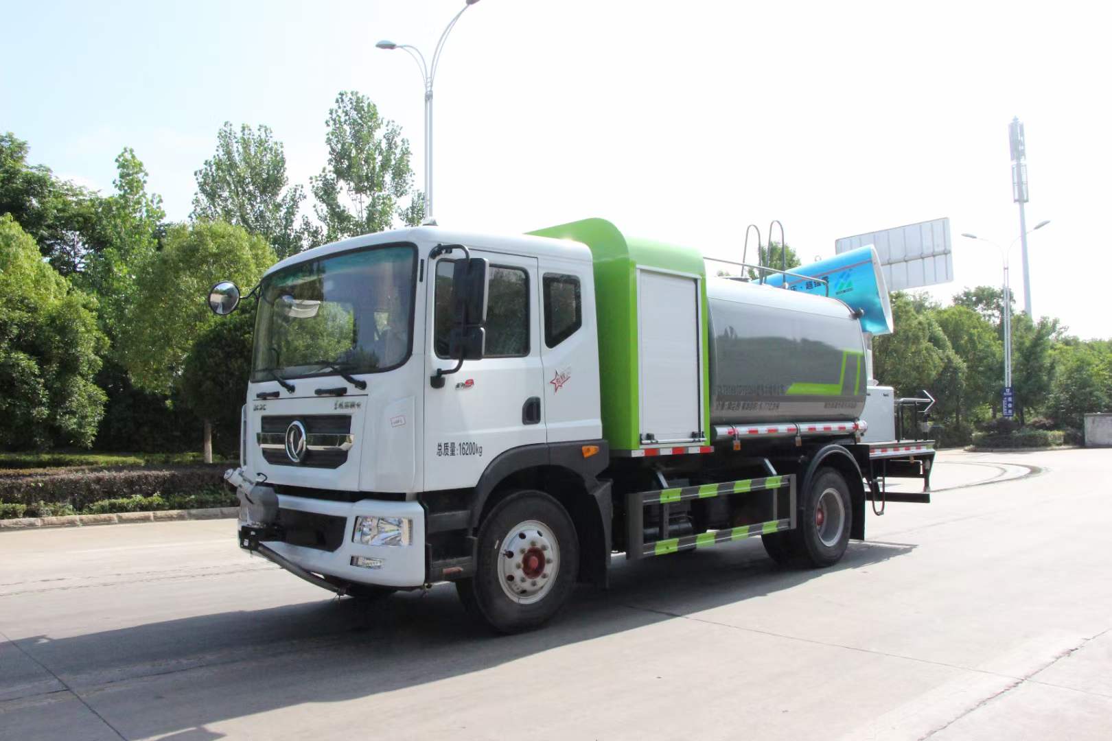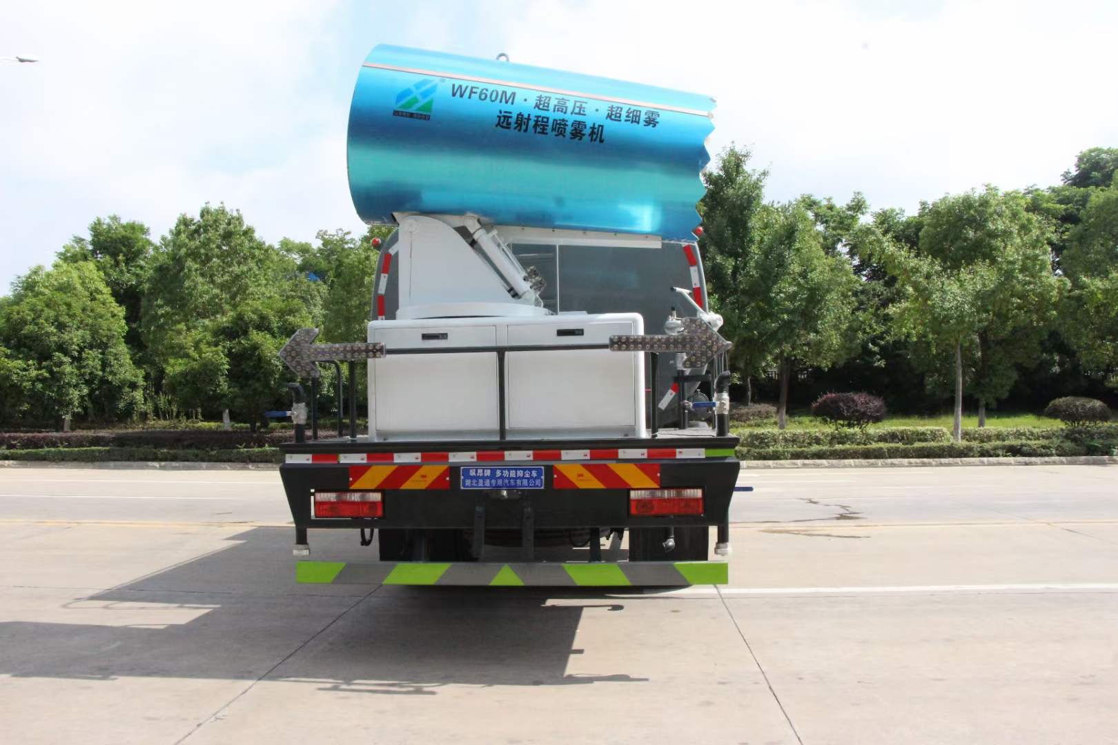 多利卡80米霧炮車(chē)_東風(fēng)多利卡D9抑塵車(chē)_京牌12方抑塵車(chē)_湖北盈通專(zhuān)用汽車(chē)有限公司,該車(chē)用途為抑塵降霾.主要裝置為罐體及噴霧裝置.罐體總?cè)萘?/span>:9.2立方米,罐體有效容積:8.77立方米,罐體外形尺寸(長(zhǎng)×長(zhǎng)軸×短軸)(mm):2800×2450×1720.ABS系統(tǒng)生產(chǎn)廠家,型號(hào) :焦作博瑞克控制技術(shù)有限公司,J ABS;襄陽(yáng)東風(fēng)隆誠(chéng)機(jī)械有限責(zé)任公司,ABS/ASR-24V-4S/4M.隨底盤(pán)選裝限速裝置,限速裝置限速(km/h):89.側(cè)、后防護(hù)材料均為:Q235碳鋼,連接方式均為:螺栓連接,后部防護(hù)截面尺寸(mm):120×50,后部防護(hù)離地高度(mm):490.僅采用底盤(pán)3950mm軸距改裝.選裝燃油箱安裝位置.選裝噴霧裝置樣式,選前部電子炮樣式;選裝前部不帶電子霧炮.當(dāng)前部選裝不帶電子霧炮時(shí),車(chē)長(zhǎng)7750mm,無(wú)前伸.當(dāng)前部選裝帶電子霧炮時(shí),車(chē)長(zhǎng)8250mm,前伸為500mm. |