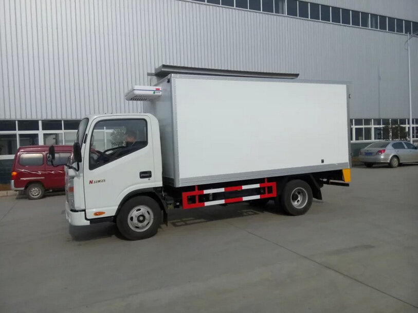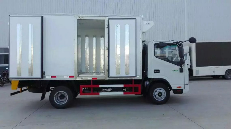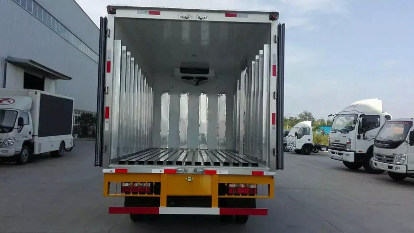 冷藏車(chē)廂體:采用國(guó)標(biāo)A級(jí)聚氨酯保溫材料,厚度為8厘米,廂體內(nèi)外采用玻璃鋼材質(zhì)全包裹。不銹鋼鎖件。包角、包邊鋁合金型材。底盤(pán)采用高強(qiáng)度花紋鋁板定制。可選裝肉鉤導(dǎo)軌,和底部通風(fēng)槽。