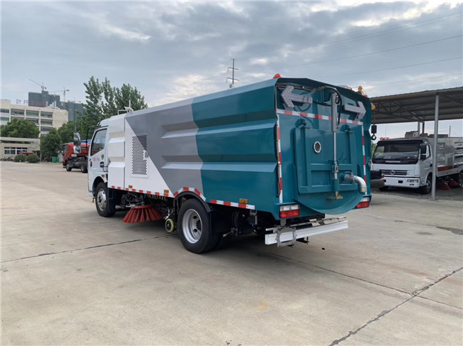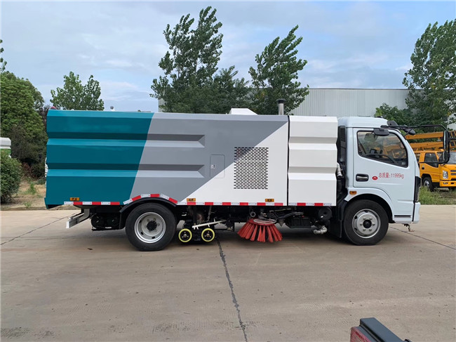 該洗掃車采用東風多利卡國六二類底盤改裝,加裝副發動機、風機、清水箱、垃圾箱、左右立掃、掃盤降塵系統、左右高壓側噴高、吸盤內置高壓主噴桿、氣動系統、液壓系統、專用裝置電控系統和副車架等改裝而成。